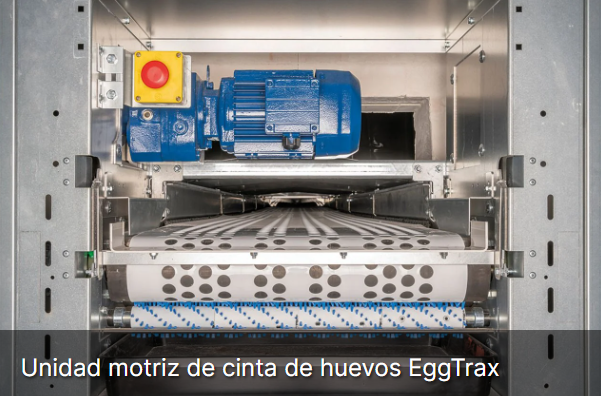 • EggTrax ➡️ la unidad motriz de cinta de huevos para una transferencia sin dificultades de los huevos desde la cinta longitudinal al sistema de recolección de huevos;