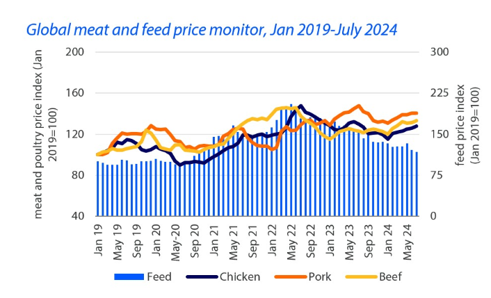 La mayoría de las industrias avícolas en todo el mundo han seguido siendo relativamente rentables, con precios en aumento en muchos casos. Las principales excepciones son China y Japón, que siguen sufriendo un exceso de oferta local. El rápido crecimiento de la producción, en combinación con condiciones económicas locales más difíciles, y una menor confianza de los consumidores, ha dado lugar a un exceso de oferta, con precios relativamente bajos y un aumento de las existencias. Esto también ha afectado las importaciones, con grandes caídas interanuales en las importaciones de pollo crudo hacia China y Japón en el primer semestre de 2024.