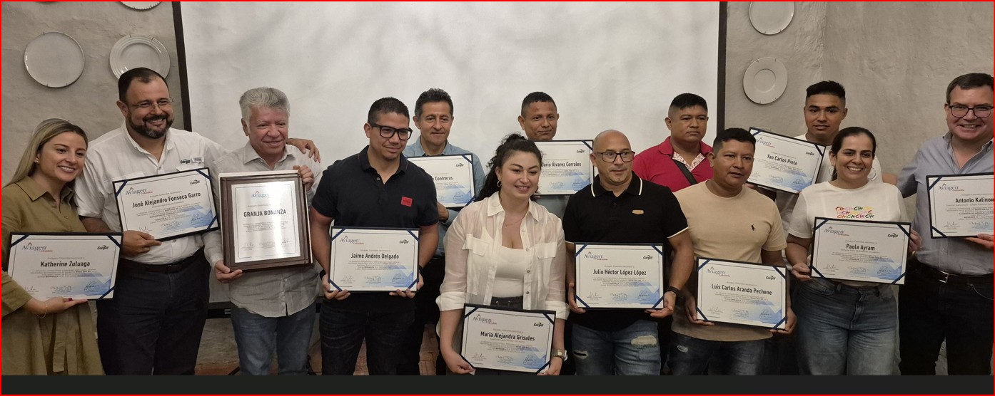 Estos logros destacan la excelencia en gestión avícola, trabajo en equipo, y la calidad de los pollos de engorde Ross 308 AP. Para celebrar su éxito, el equipo de Aviagen distinguió a los equipos de granja en Cartagena y Cali, los días 10 y 13 de Febrero, haciéndoles entrega de un certificado y un trofeo en reconocimiento por su dedicación y sobresaliente rendimiento.