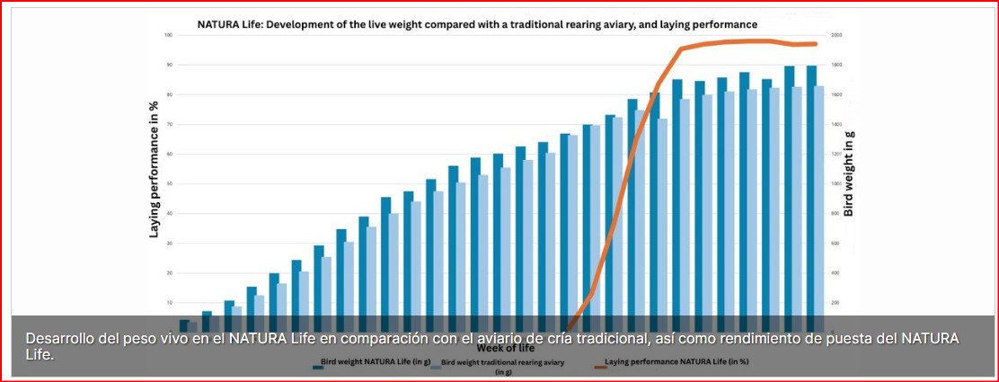 MUNDO - ¿Es posible manejar las gallinas ponedoras desde el principio, es decir, desde el huevo incubado poco antes de la eclosión hasta el final del período de postura, en un único sistema? Sí, es posible: Con el NATURA Life, Big Dutchman ha desarrollado un aviario combinado para la cría y la postura que se presentó en noviembre de 2024 en la feria EuroTier.