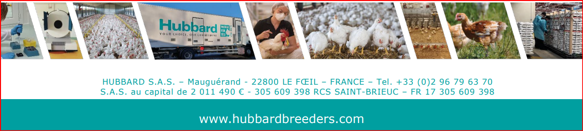 El compromiso de Hubbard es ofrecer un amplio rango de productos, desde broilers convencionales coste-eficientes hasta pollos de crecimiento más lento. Los programas de selección genética de Hubbard están diseñados y dedicados a satisfacer los crecientes desafíos de nuestra civilización proveyendo aves eficientes, sanas, sabrosas y de alta calidad de carne para la creciente población mundial.