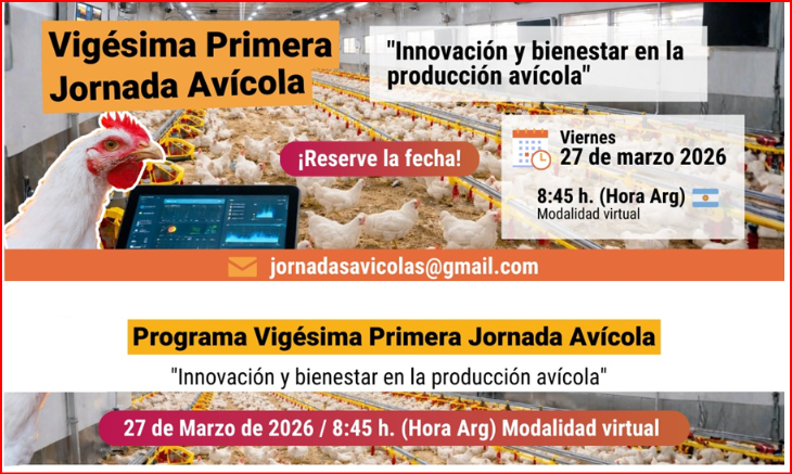 12 March 2026MUNDO - Red Alimentaria y el Dr. Isidro Molfese, te invitamos a ser parte de la “Vigésima Primera Jornada Avícola por y para la avicultura”, pensada para compartir conocimientos, tendencias y experiencias clave de la industria avícola.