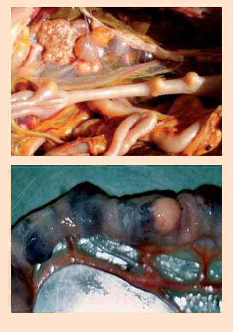 6.- En casos avanzados, los tubérculos pueden ser observados a lo largo de la médula ósea del fémur y de la tibia.