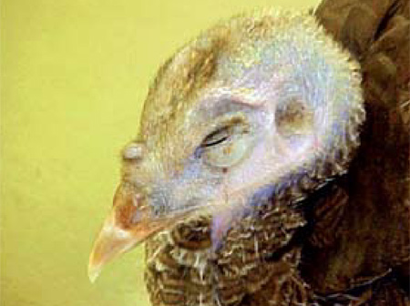 3.- Las especies susceptibles son pavos, pollos, faisanes, perdices de roca, gallina de guinea y gansos. Los pavos son las especies más vulnerables en edades comprendidas entre la semana de edad 3 y 12 y en los pollos entre 4 a 6 semanas de edad. La mucosa cecal se encuentra comúnmente ulcerada. El principal vector es Heterakis gallinarum a través de los huevos y las larvas, donde se encuentran las formas de Histomonas meleagridis. Algunas aves salvajes también pueden servir como vectores. El contenido cecal se mezcla a menudo con sangre.