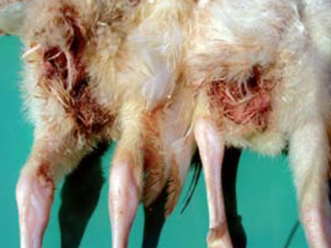 3.- El picoteo de la piel en varias partes del organismo y de la cloaca produce pérdida de sangre, protrusión de las vísceras de las cavidades corporales y muerte. Algunos de los estados que se supone producen picoteo de las plumas son: Intensidad alta de luz en el galpón, alimento peletizado, de?ciencias nutricionales y minerales y piel dañada por ectoparásitos.