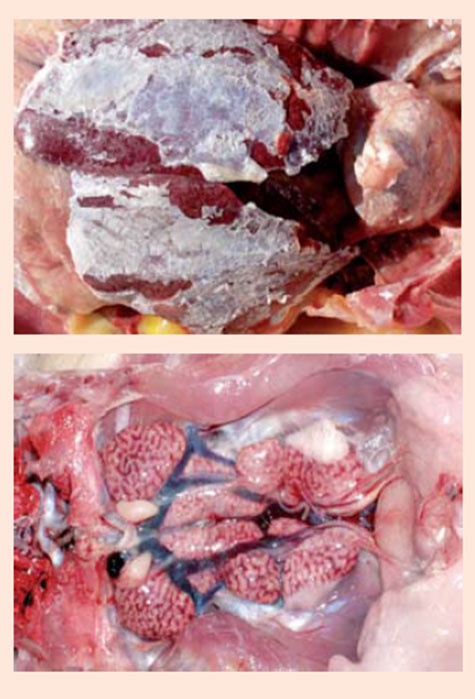 Los niveles bajos de fósforo (bajo el 0,6 %) ayudan probablemente al desarrollo de la enfermedad. No existen signos clínicos específicos, excepto por la depresión y la pérdida de peso. La tasa de mortalidad puede incrementarse y persistir alrededor del 2 al 4 % al mes, durante el periodo reproductivo. La mortalidad total en los lotes altamente afectados pue- de alcanzar 50 %.