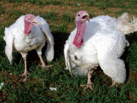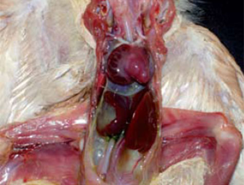 5.- La célula muerta es el resultado de la presión intracelular incrementada, destrucción de la estructura celular y daño celular potencial. En pavos adultos afectados, se observa disnea y caída del ala característica.